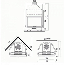 Корпус каминной топки выполнен из жаропрочной стали, колосники и патрубки из чугуна.