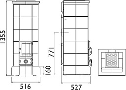 Агрегат оснащен системами регулировки подачи первичных и вторичных воздушных масс. Пластины, кольца и рама печи изготовлены из чугуна. В качестве топлива используются дрова или гранулы. Расход дров в среднем составляет 2 кг в час. Модель оборудована вместительной духовкой и одноконфорочной варочной панелью. Чугунная топка снабжена дверцей со стеклокерамической вставкой. Предусмотрена также вместительная дровница.